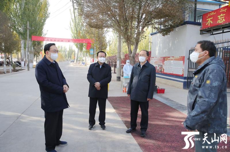 10月26日,自治区党委书记陈全国到疏附县调研疫情防控和为民服务工作。这是陈全国来到疏附县站敏乡三村与“访惠聚”驻村工作队员亲切交谈,详细了解村民走访排查、居家服务保障、公共环境消杀等情况。记者崔志坚摄