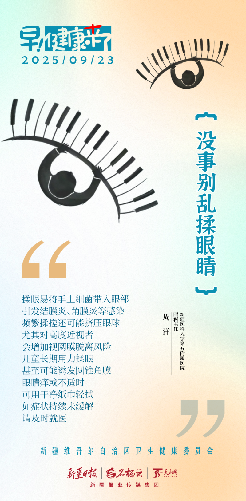 风险。新疆医科大学第五附属医院眼科主任周洋提示,揉眼易将手上细菌带入眼部,引发结膜炎、