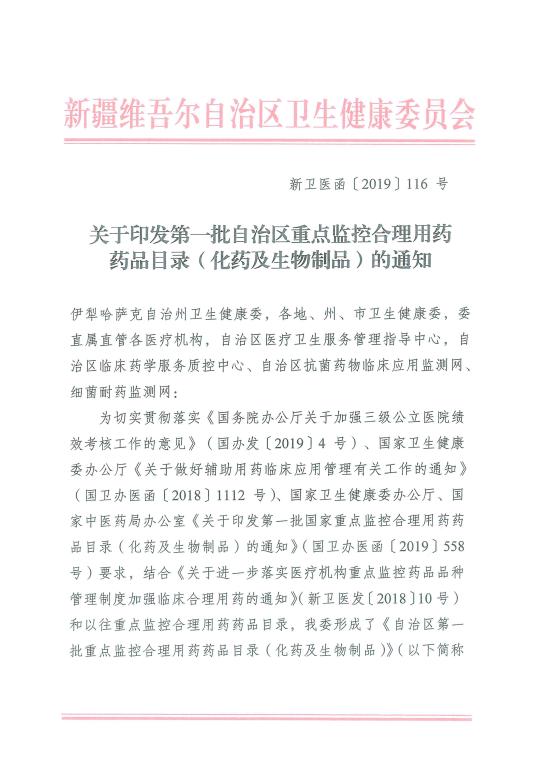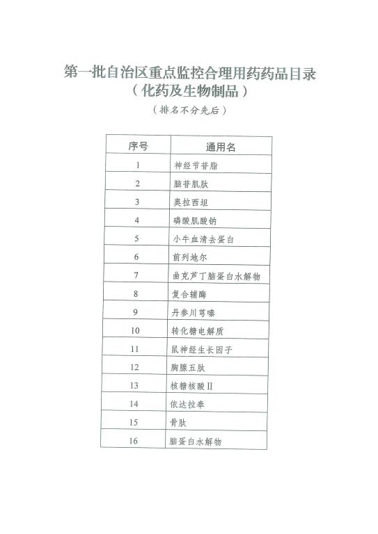 关于印发第一批自治区重点监控合理用药药品目录(化药及生物制品)的通知