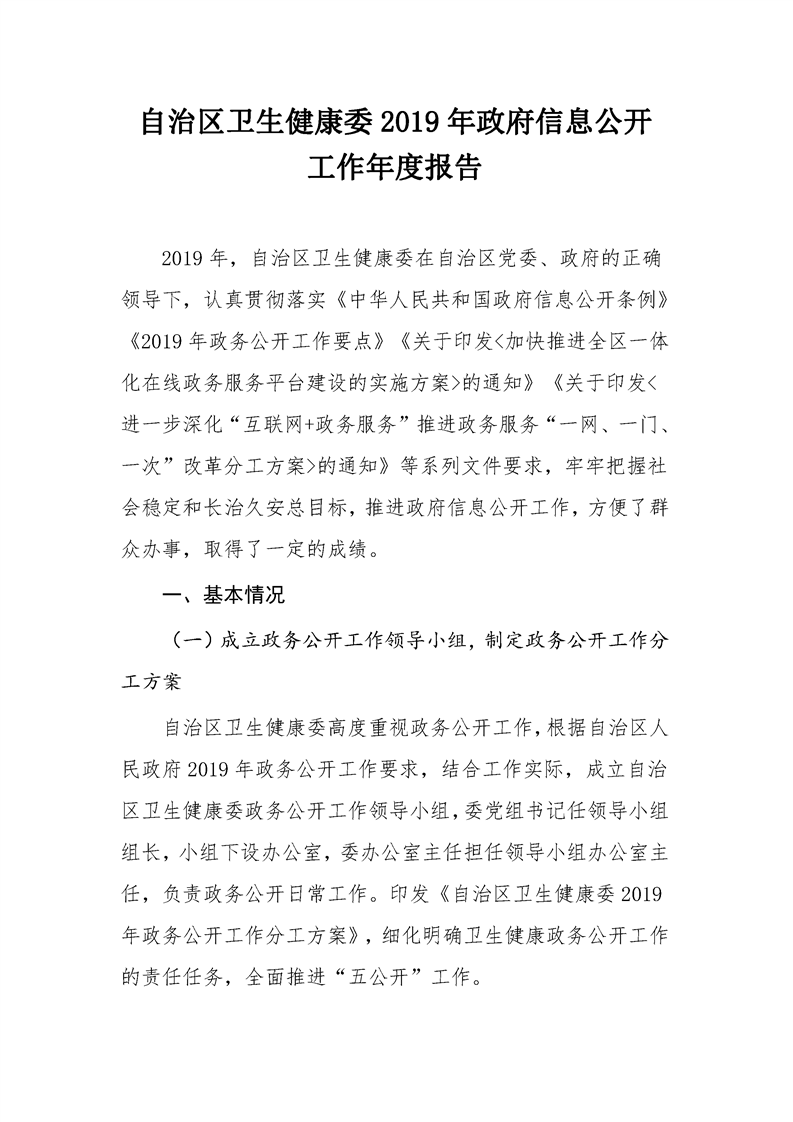 自治区卫生健康委2019年政府信息公开工作年度报告