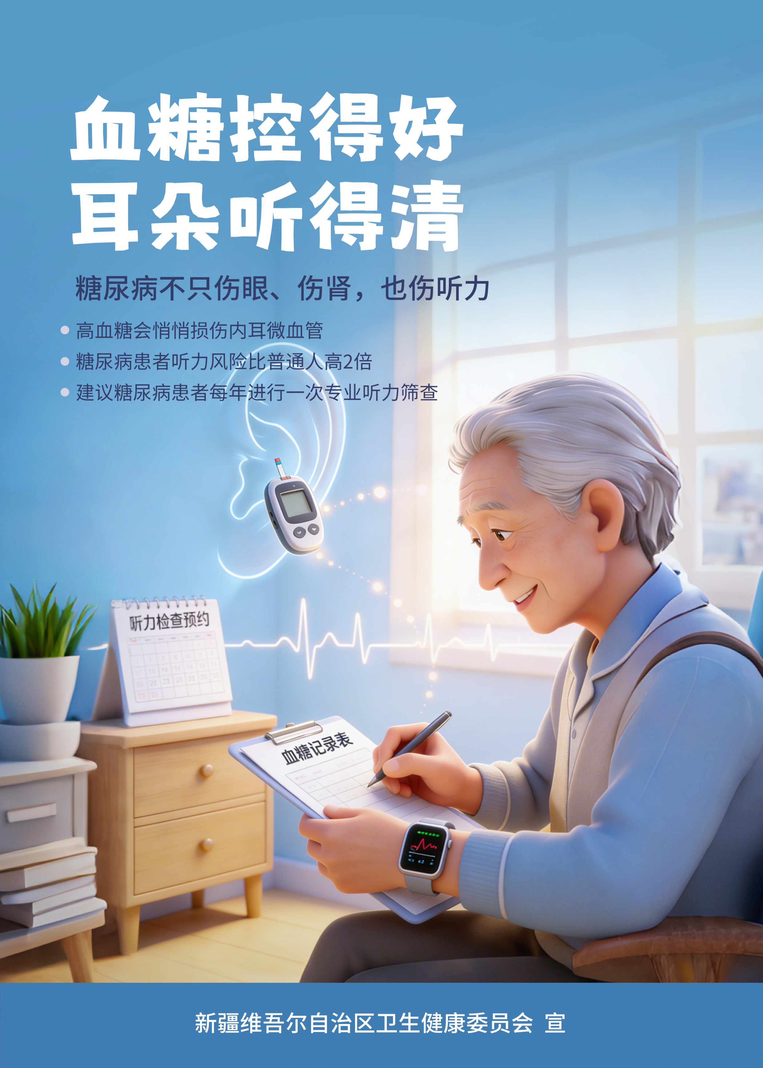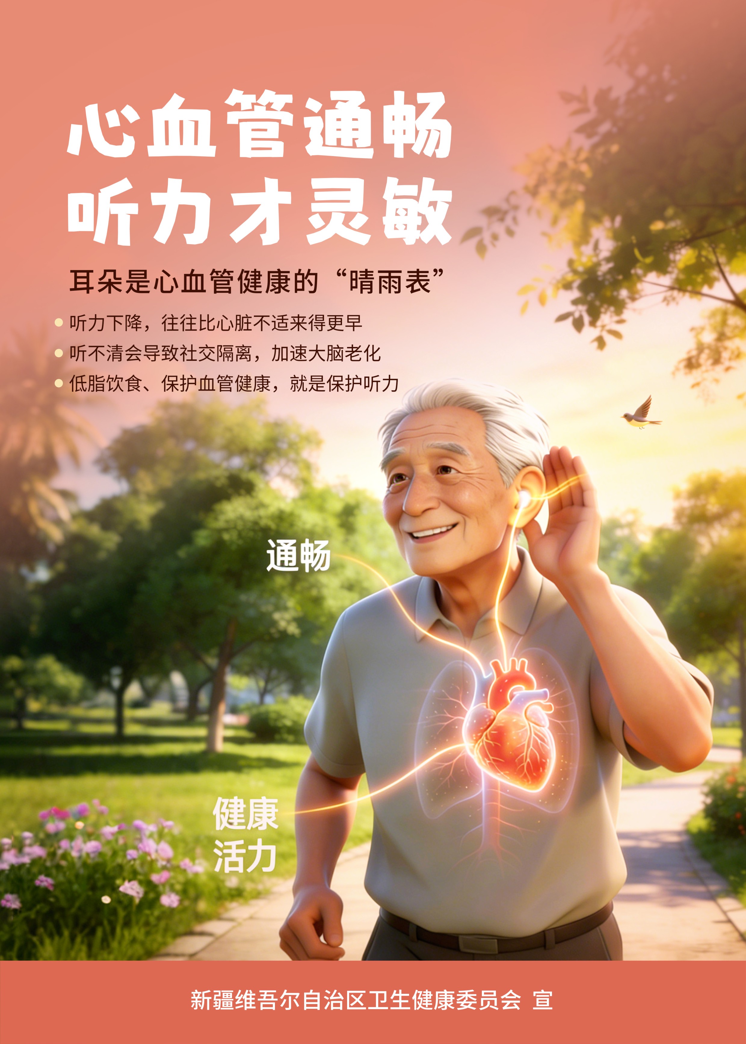 耳朵藏着慢病小秘密你知道吗?糖尿病、高血压危害听力健康,血管健康才是听觉的守护神!科学用药别盲目,耳毒性药物要避开!清淡饮食、规律作息,健康生活方式拉满守护值!一组海报解锁慢病管理+听力保护全攻略,干货超足,快戳图学知识点,守护全家耳聪目明。
