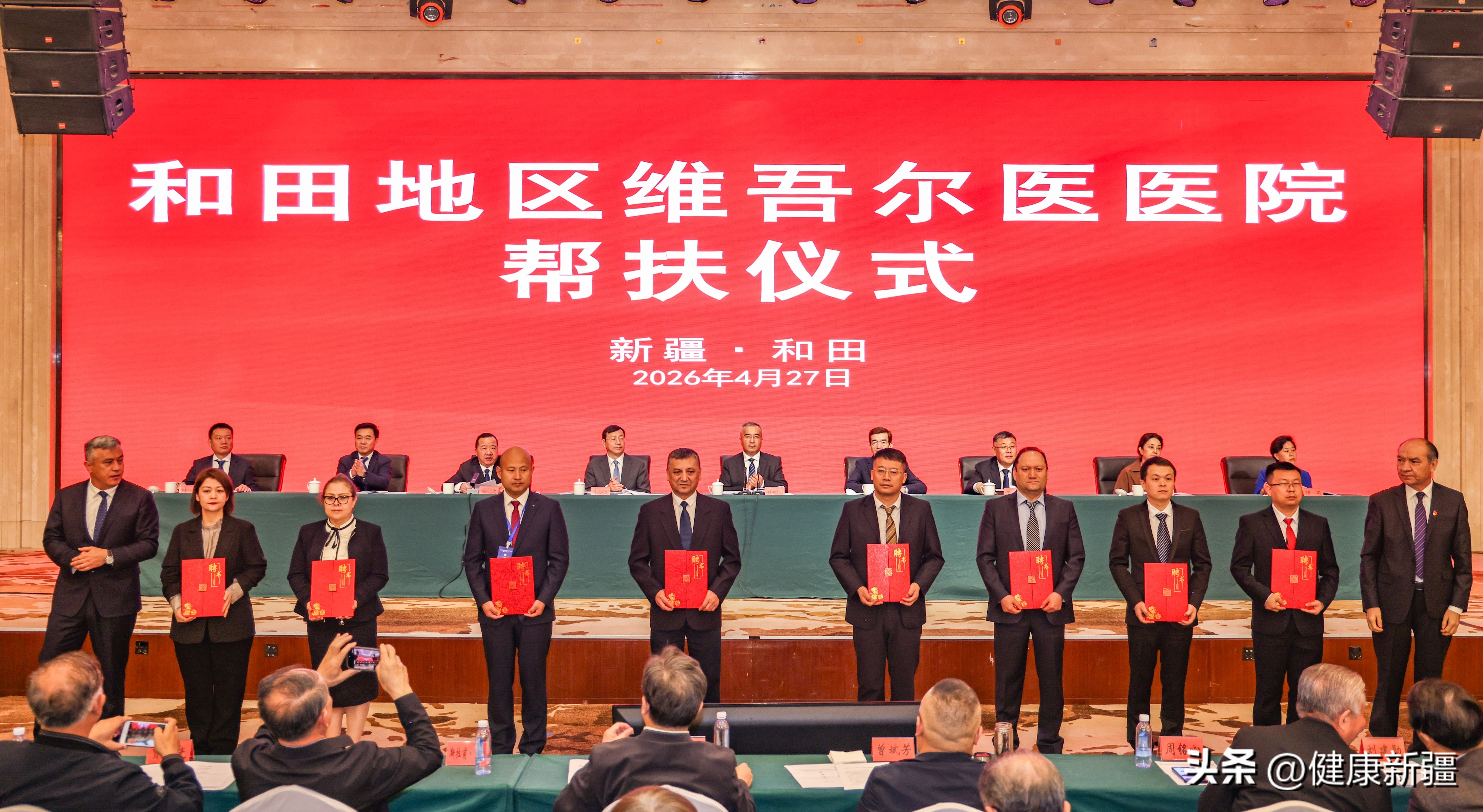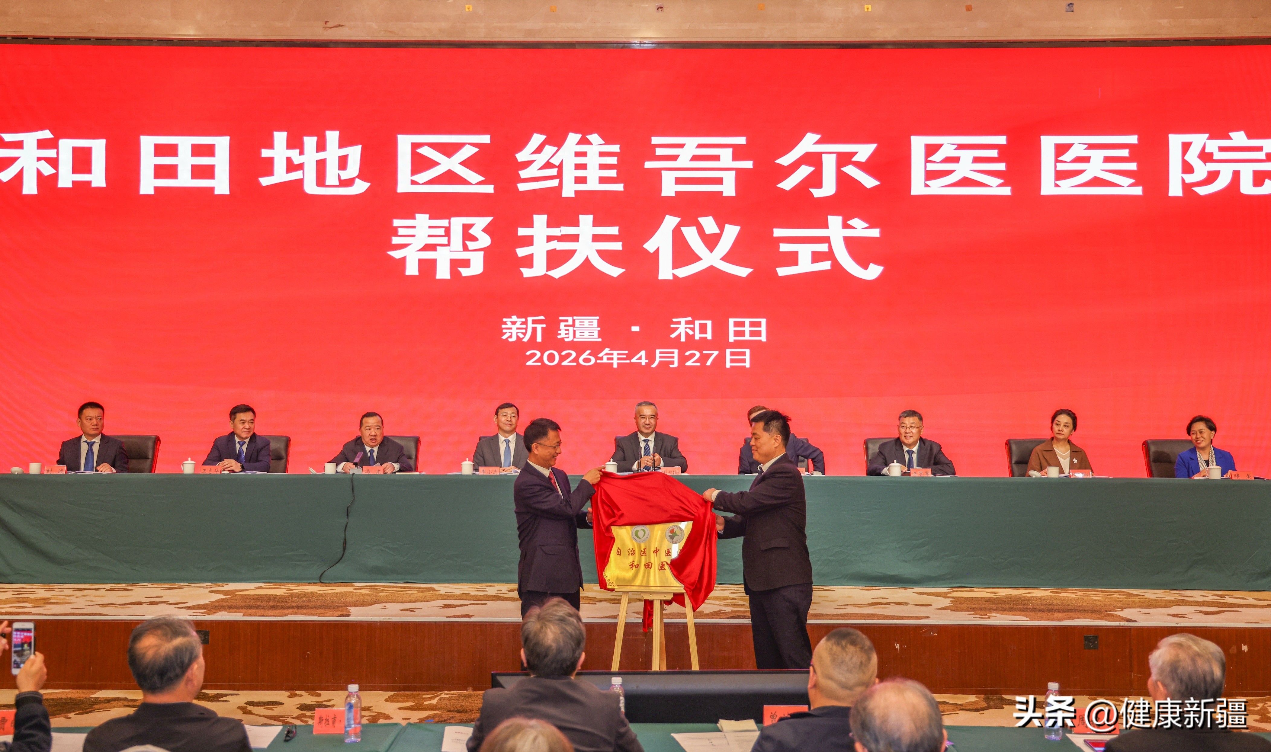 揭牌仪式上,新疆医科大学中医学院党委副书记、院长;新疆医科大学第四附属医院(自治区中医医院)党委副书记、院长王成伟与和田地委副书记、行署副专员张彤共同为“自治区中医医院和田医院”揭牌。全国名中医周铭心教授工作站,以及刘红霞、胡晓灵、买尼沙·买买提等6位知名专家名医工作室同步落地,覆盖皮肤科、老年医学、心病科、脾胃病科、治未病科、骨伤科等优势专科,让南疆群众在家门口就能享受到高品质中医药服务。